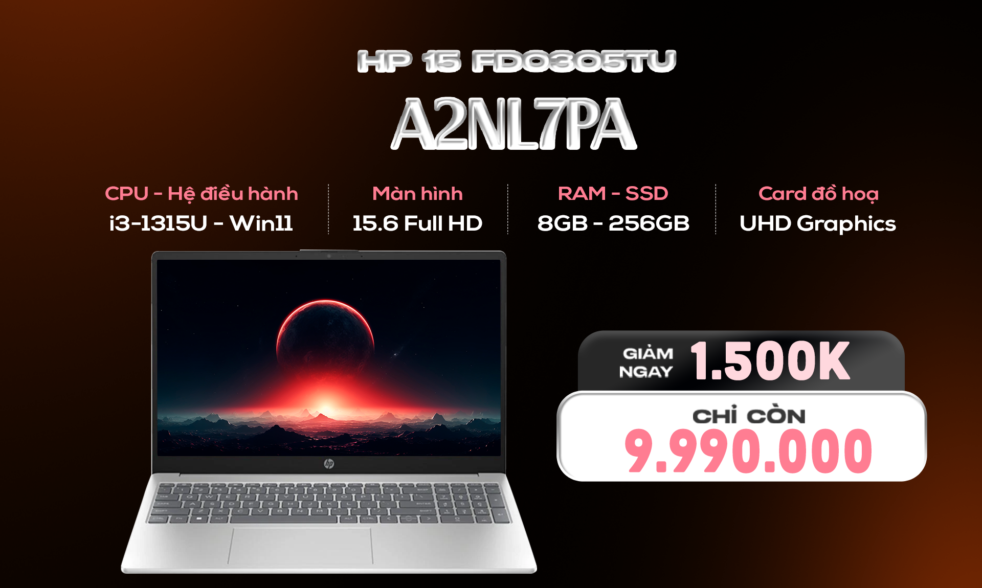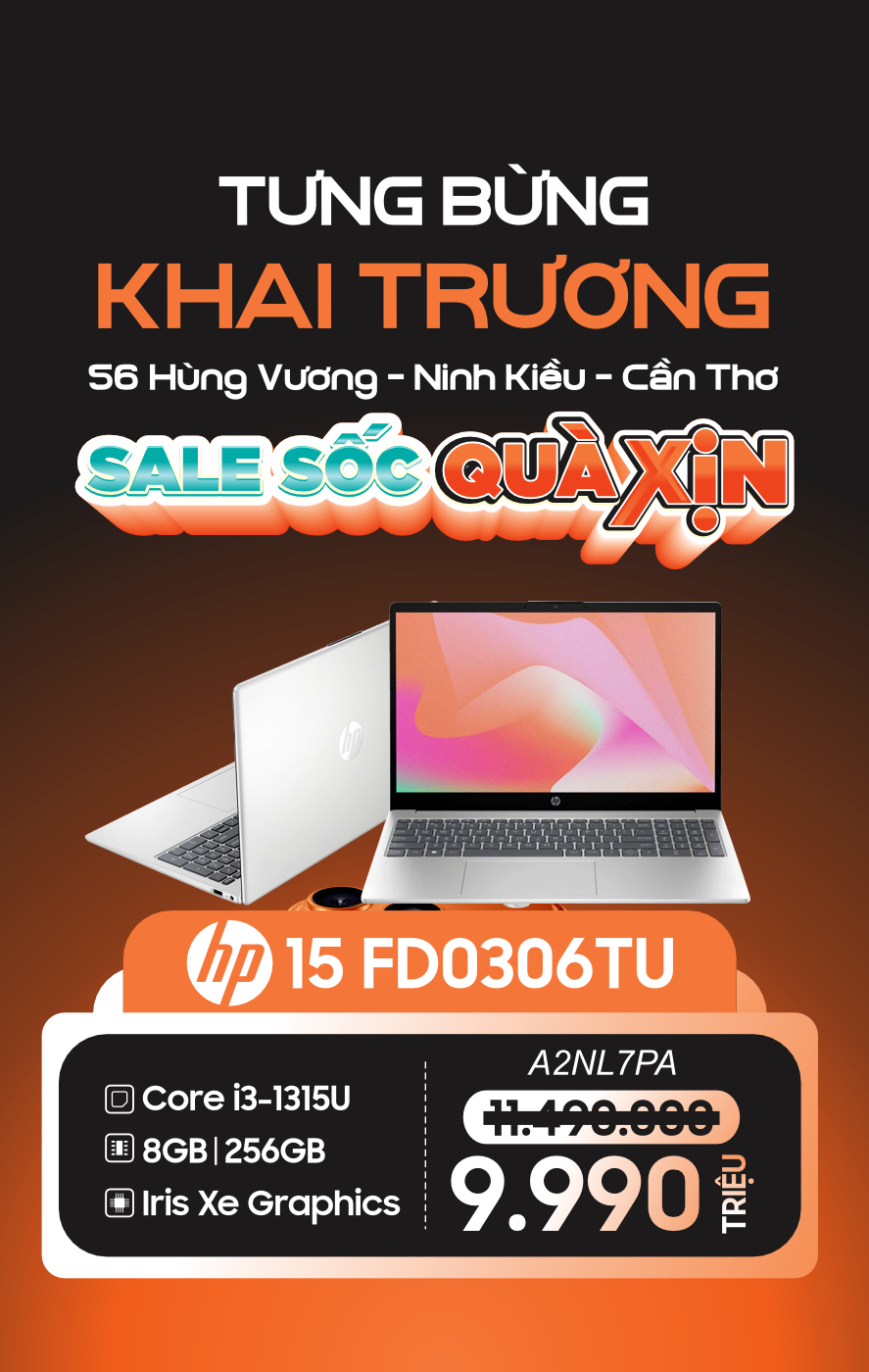 Laptop HP 15 FD0306TU I3 1315U A2NL7PA (Core i3-1315U/8GB/256GB/15.6″FHD/Win11)
