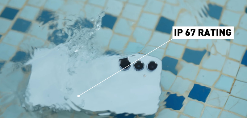 Điện thoại Samsung Galaxy A55 được trang bị chuẩn chống bụi và nước IP67, mang đến sự an tâm toàn diện cho bạn trong những tình huống bất lợi từ môi trường bên ngoài. Với chuẩn IP67, điện thoại của bạn có khả năng hạn chế bụi bẩn bám mảng, bảo vệ các linh kiện bên trong khỏi hư hỏng. Đối với khả năng chống nước, bạn hoàn toàn có thể thoải mái sử dụng điện thoại trong môi trường ẩm ướt như vận động đổ mồ hôi hay đi trong mưa nhỏ.