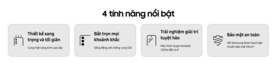 Đa cửa sổ (chia đôi màn hình) Âm thanh Dolby Atmos Tối ưu game (Game Booster) Trợ lý ảo Samsung Bixby Thu nhỏ màn hình sử dụng một tay Mở rộng bộ nhớ RAM Màn hình luôn hiển thị AOD Không gian thứ hai (Thư mục bảo mật) Chế độ đơn giản (Giao diện đơn giản) Chặn tin nhắn Chặn cuộc gọi Chạm 2 lần tắt/sáng màn hình |