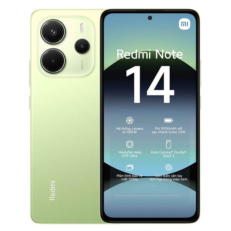 Redmi Note 14 256GB, một chiếc smartphone ra mắt vào tháng 01/2025 của nhà Xiaomi, được thiết kế và hoàn thiện với chất liệu bền bỉ, vi xử lý hiện đại, màn hình AMOLED sắc nét và viên pin 5500 mAh, hứa hẹn đáp ứng trọn vẹn nhu cầu sử dụng đa dạng của người dùng.